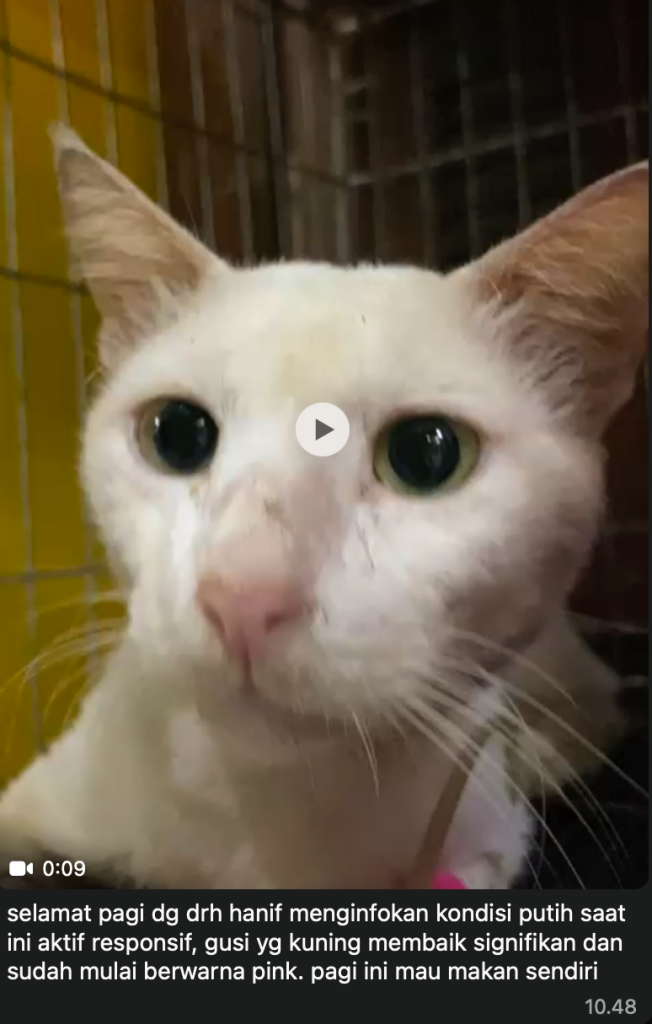 Si Putih hari pertama pulang dari klinik (masih kurus).